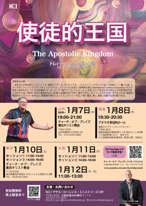 【山形・福島・東京・大阪】トレバー・ニューポート師 カンファレンス『使徒的王国』